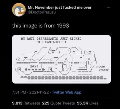 SimplyTadpole@lemmy.dbzer0.com to internet funeral@lemmy.worldEnglish · 2 years agothis image is from 1993lemmy.dbzer0.comimagemessage-square3linkfedilinkarrow-up11arrow-down10