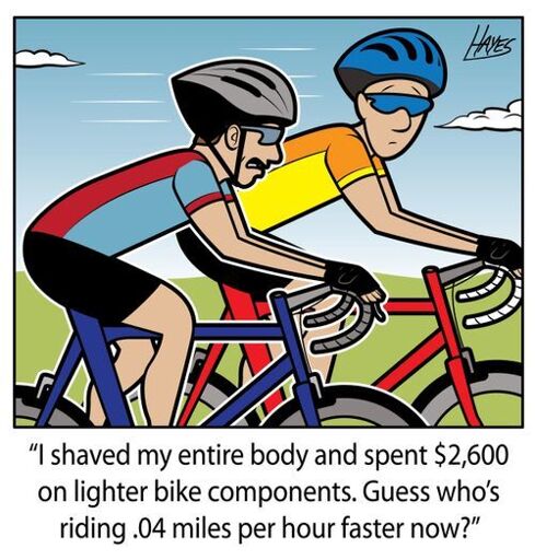 Yeah it’s dumb. I bought my used mountain bike from a entusiaist. The bike was in really good shape with some of the best components money could buy at the time. Out of curiosity i asked him why he would sell the bike. He said he really liked it a lot, but it was just too heavy for long uphill rides. He then showed me the bike he replaced it with. A brand spanking new high end mountain bike. When i was home, i just had to know and compared the specs roughly from what i knew. My calculations said that his new bike was like 50 to 100gramms lighter. The guy wasn’t really a featherweight either. Eating less would’ve saved him like 5k